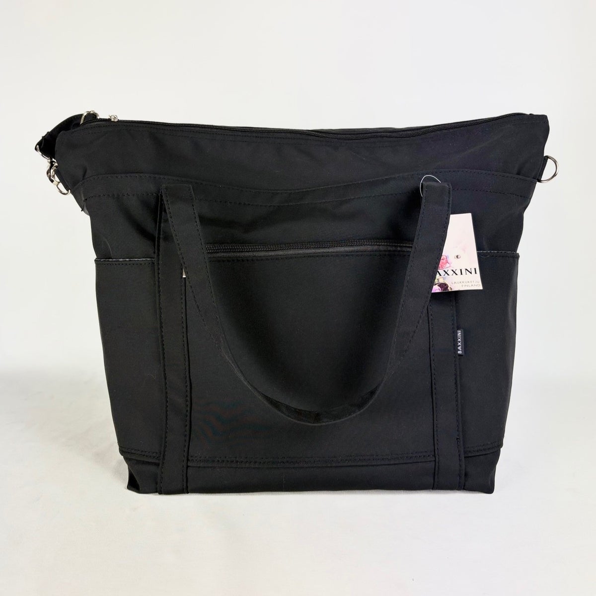 Reilunkokoisessa sisätilassa on kaksi avotaskua sekä vetoketjutasku. Edessä kaksi avotaskua ja vetoketjutasku pikkutavaroille.