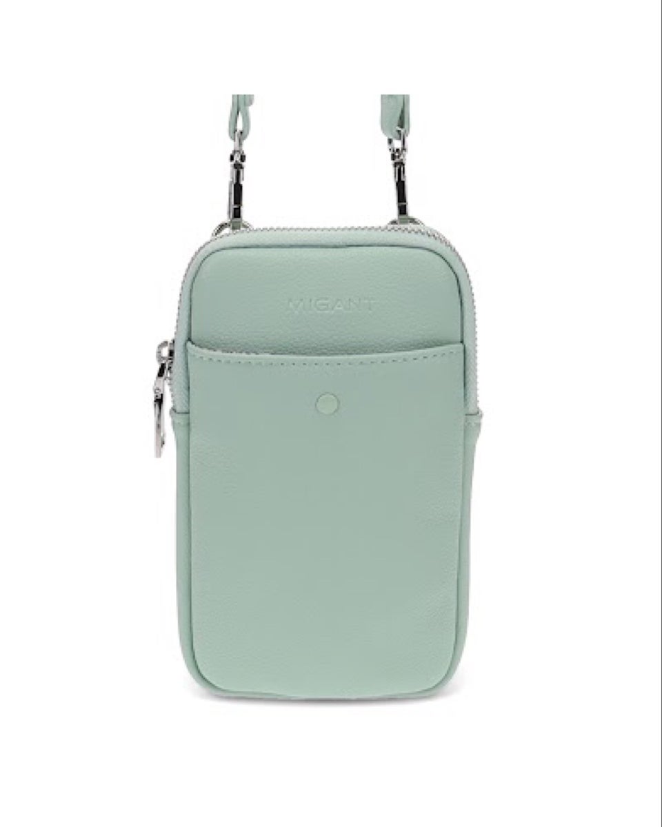 Yksinkertaiseen kännykkälaukkuun sopii puhelin ja jotain muuta pientä. Säädettävä muodikas hieman leveämpi hihna, myös irroitettavissa. Edessä magneetilla suljettava avotasku. Sisällä kolme korttipaikkaa. Superpehmeä ja tyylikäs materiaali!