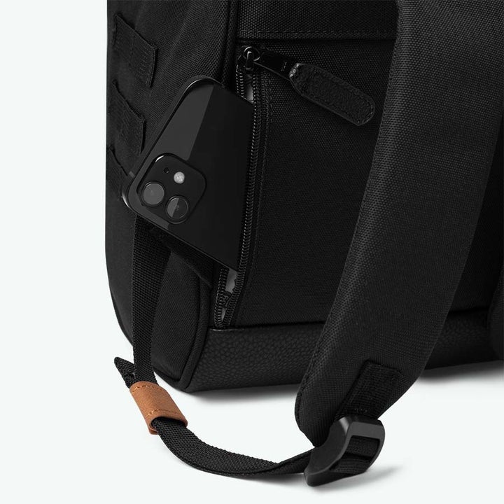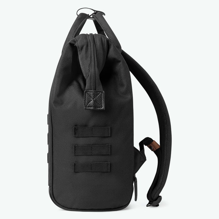 Repun pohja on vahvistettu vegaanisella keinonahalla. Tämä tuo myös mukavaa ryhtiä reppuun. Repun kangasmateriaali on vettä hylkivää, joten reppu sopii myös kosteampaan keliin.
