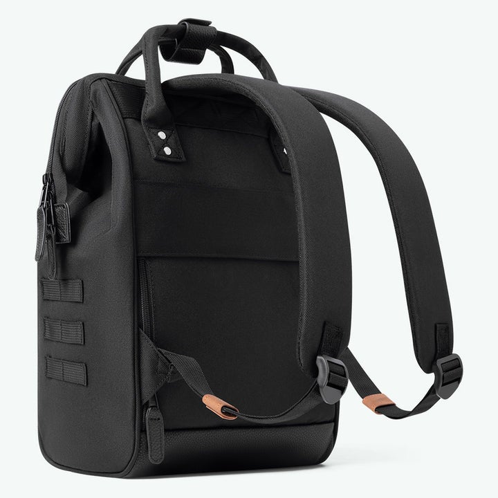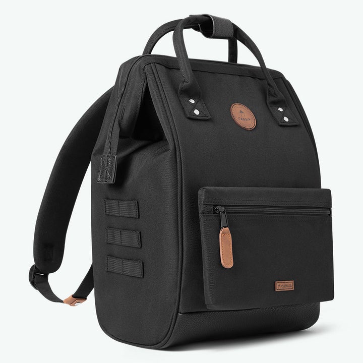 Käytännöllinen Cabaia Adventurer-reppu aukeaa loistavasti: Repun yläosaa kehystää sisäänrakennettu kehys, kuin Maija Poppasen laukussa. Päävetoketju aukeaa leveästi ja napakasti. Upeasti verhoillun repun sisältä löytyy pehmustettu tietokoneosasto ja muita taskuja. Saat reppuun sisälle sopimaan järkevästi omille paikoilleen läppärin, lompakon kännykän ja muita pikkutavaroita. Reppu sopii loistavasti työkäyttöön, matkalle ja vapaa-aikaan. Repun takaa löytyy myös pieni piilotasku joka on juuri lompakon tai puhelimen kokoinen.
