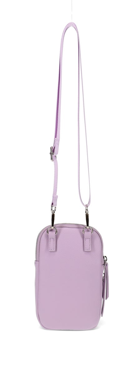 Yksinkertaiseen kännykkälaukkuun sopii puhelin ja muut tärkeät pienet tavarat. Säädettävä muodikas hieman leveämpi hihna, myös irroitettavissa. Edessä vetoketjutasku johon mahtuu esim. pieni lompakko ja avaimet. Superpehmeä materiaali!