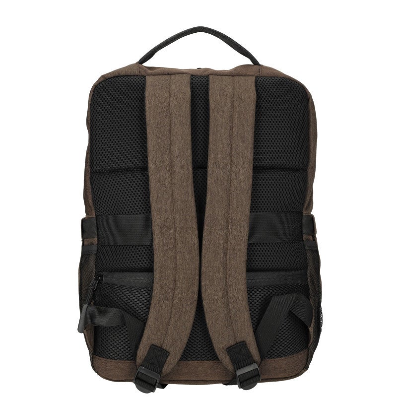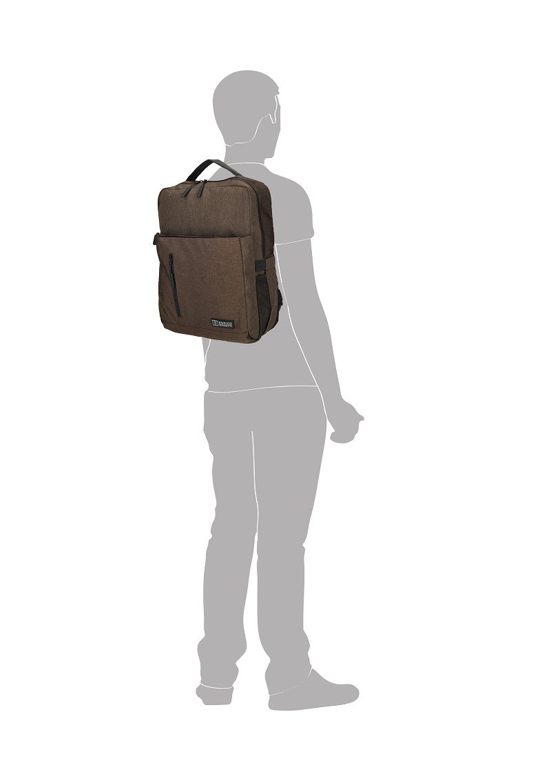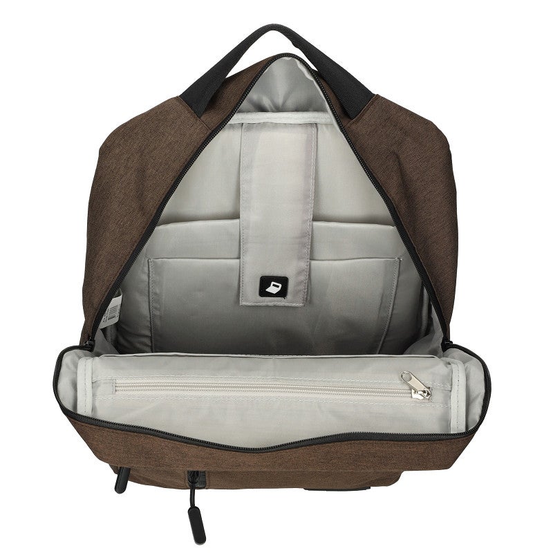 Tilava päätila aukeaa reilusti helpottaen pakkaamista/tavaroiden pois ottamista. Sisätilassa selkää vasten pehmustetut paikat 14"-tietokoneelle sekä 10.2"-tabletille. Kansipuolella sisällä kaksi isoa avotaskua sekä vetoketjutasku. Edessä tilava vetoketjutasku sekä pienempi tasku esim. avaimille. Molemmilla sivuilla pullotaskut. Takana turvatasku, loistava esim. lompakolle.