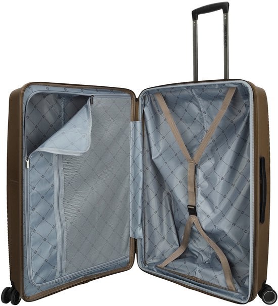 Enrico Benetti Richmond 66cm keskikoon 4-pyöräinen trolley on näppärästi laajennettavissa 'levitysvetoketjusta', jolloin tilaa tulee lisää vaikka tuliaisille! Runko on todella kestävää mutta kevyttä 100% polypropyleenia. Sitkeä materiaali kestää kovia iskuja, vääntöä ja rasitusta. Taka- ja etuosan pintakuviointi vähentää pienten naarmujen näkymistä.