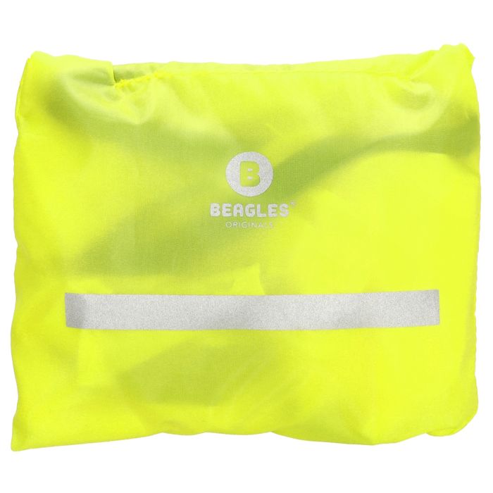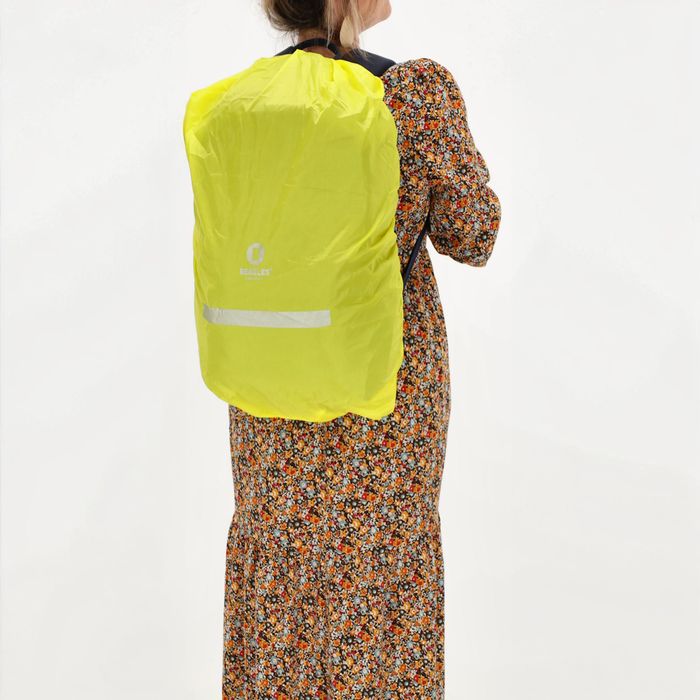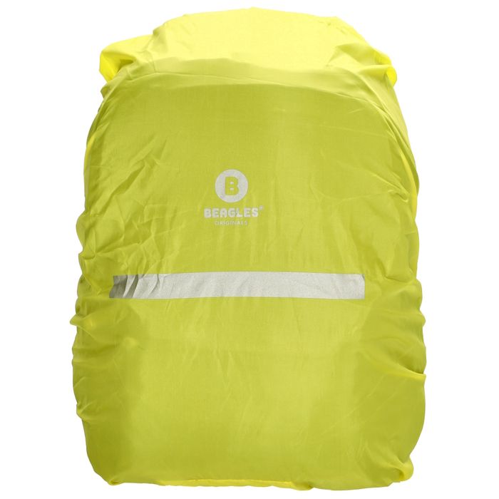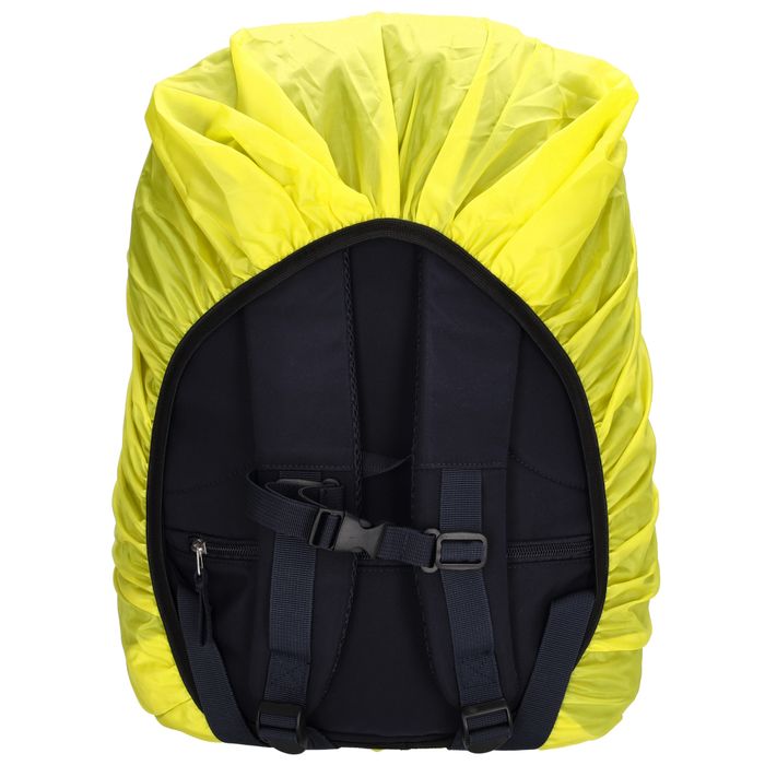 Vedenpitävä repunsuoja suojaa reppua huonolla säällä. Heijastin lisää näkyvyyttä ulkona liikkuessa.