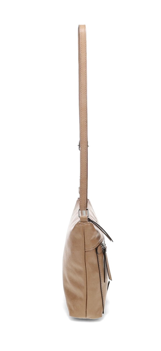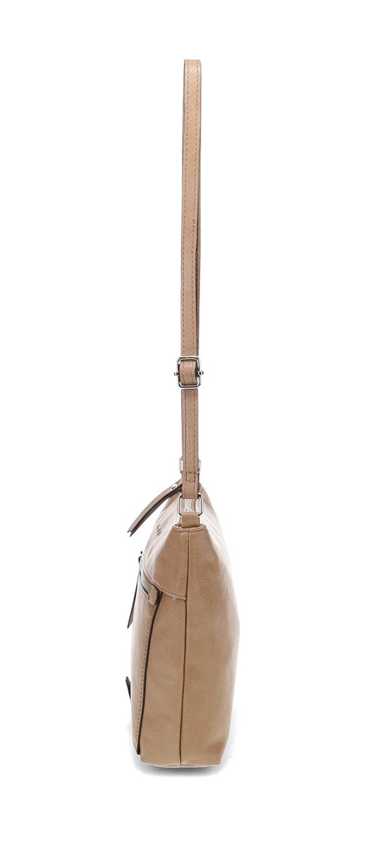 Pikkulaukuksi laukku on kivan kokoinen sillä laukussa on kuitenkin syvyyttä. Sisällä on pieni vetoketjutasku, jonka lisäksi myös laukun etuosassa on vetoketjutasku. Laukussa on pitkä säädettävä olkahihna.