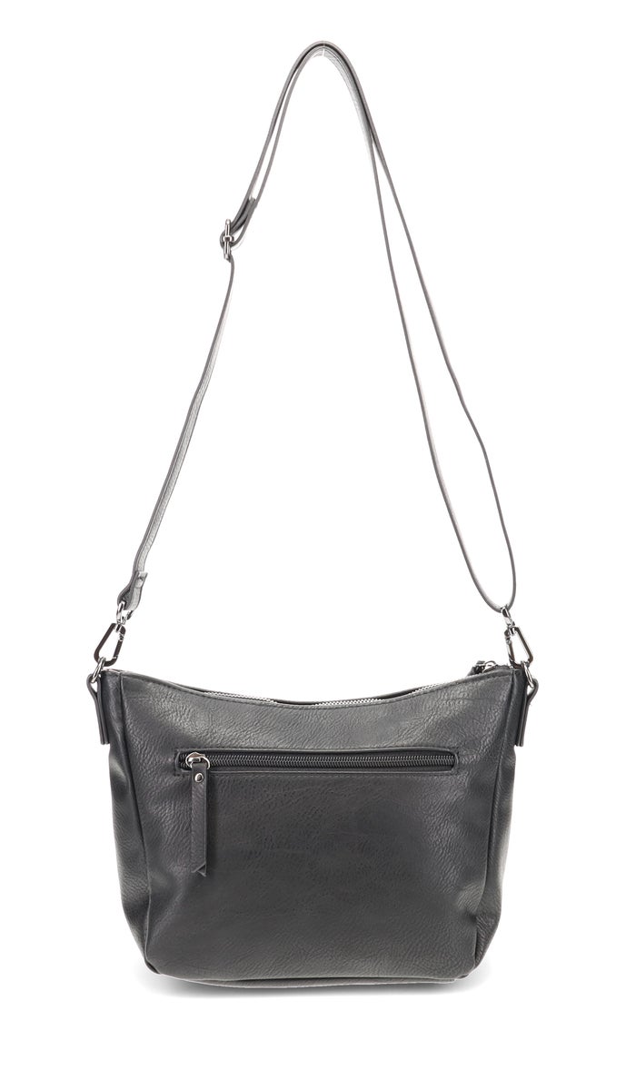 Sisällä laukussa on vetoketjutasku sekä ulkopuolella edessä on kaksi erikokoista vetoketjutaskua. Lisäksi takana on erillinen vetoketjutasku. Laukussa on pitkä keinonahkainen säätöhihna jonka saa halutessaan myös irti. Tähän laukkuun mahtuu kaikki tärkeimmät tavarat mukaan!