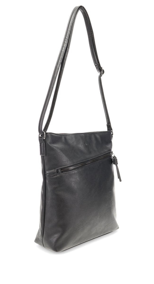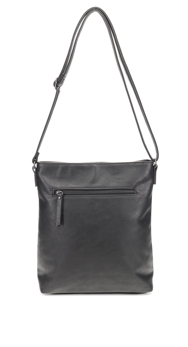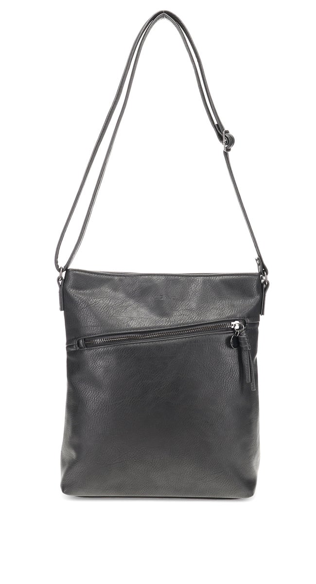 Sisällä laukussa on vetoketjutasku sekä avotasku. Ulkopuolella edessä on tilava vetoketjutasku, jonka lisäksi laukun takana myös vetoketjutasku. Laukussa on pitkä keinonahkainen säätöhihna. Tähän tilavaan laukkuun mahtuu kaikki tärkeimmät tavarat mukaan!