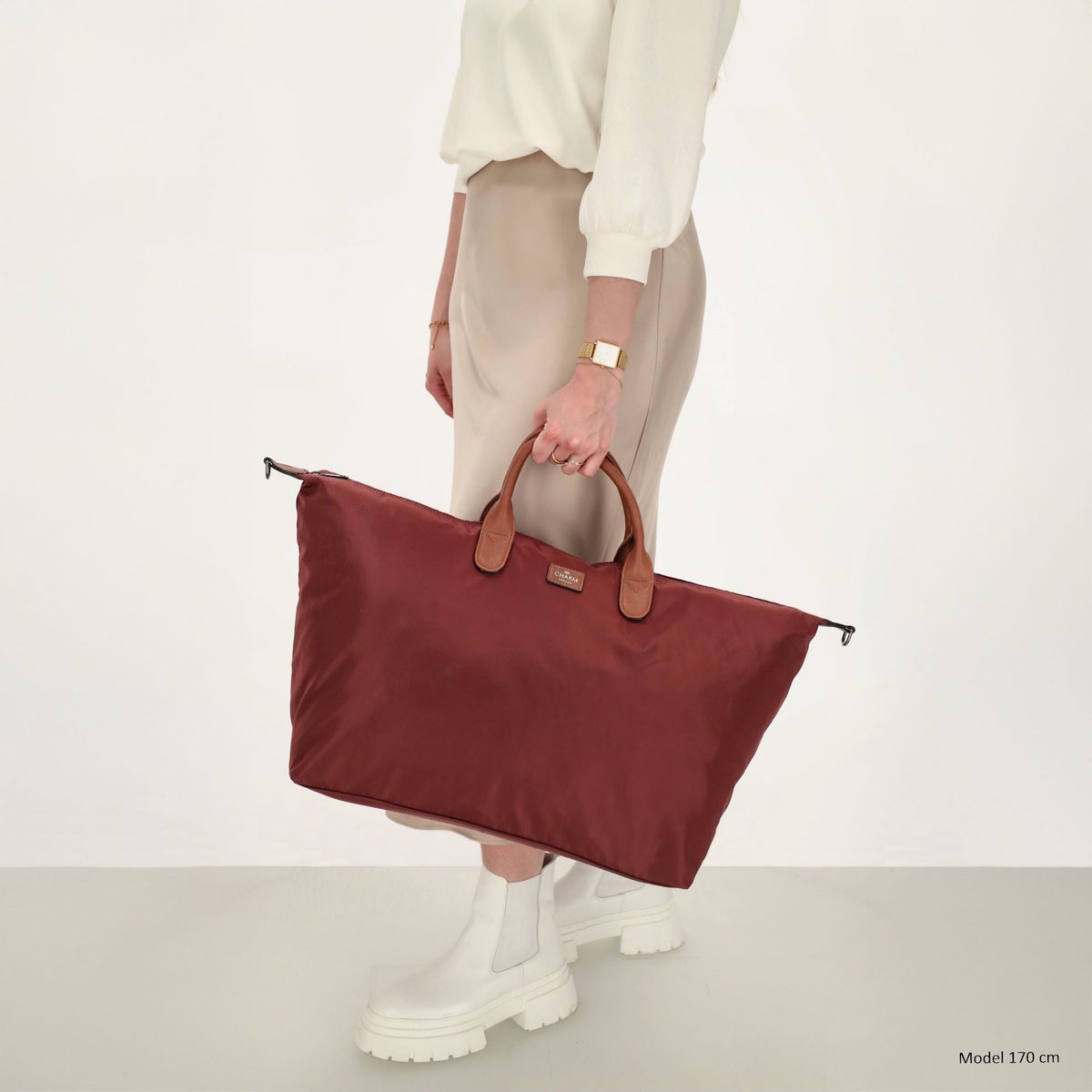 Tämä matkakassi mahtuu mittojensa puolesta myös lentokoneen matkustamoon! Todellinen leveys riippuu paljonko laukkuun pakkaa tavaraa, malli kapenee hieman alaspäin.