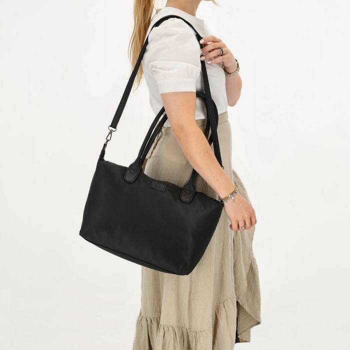 Materiaali on vettähylkivää ja laukku on itsessään hyvin kevyt. Laadukkaat helposti liikkuvat vetoketjut sekä tyylikkäät keinonahkaiset yksityiskohdat!