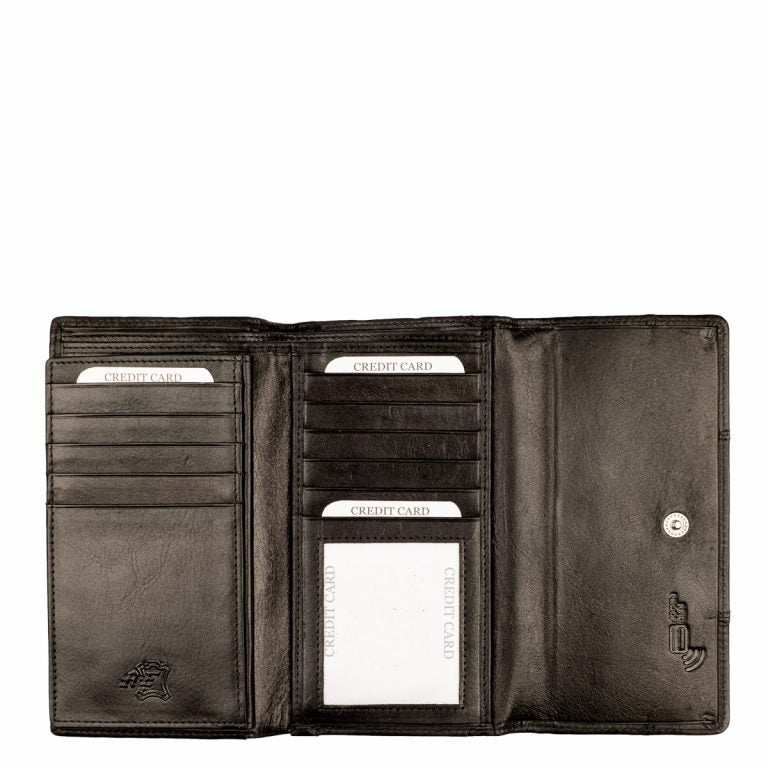 Tässä lompakkosarjassa on tyylikäs nahka sekä kaunis tikattu kuvio lompakon etupuolella. Runsaasti korttipaikkoja, kuvapaikka isolle ajokortille, seteliväli sekä haitarimaisesti aukeava kolikkotasku.