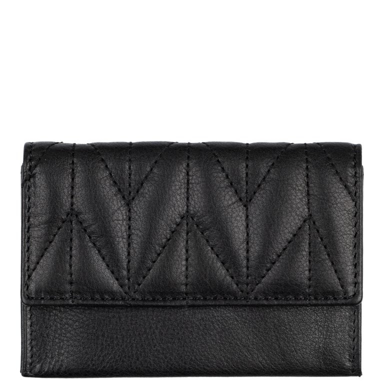 Tilat: Seitsemän väliä johon saa kortit ja setelit taiteltuna. Takana vetoketjutasku kolikoille.