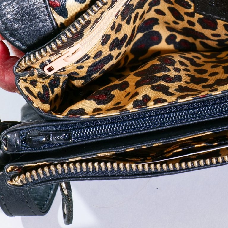 Laukun sisätilat on jaettu moneen osioon, eli tähän laukkuun on helppo organisoida tavarat omille paikoilleen. Sisätiloissa kaksi vetoketjutaskua sekä 6-korttipaikkaa. Vapaata tilaa on kivasti laukun pieneen kokoon nähden!