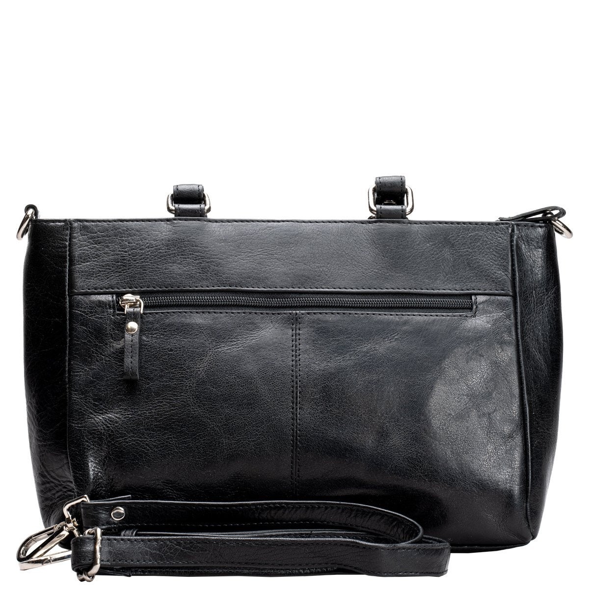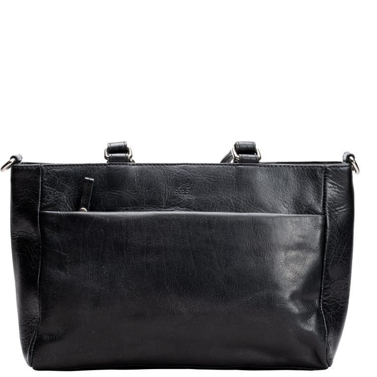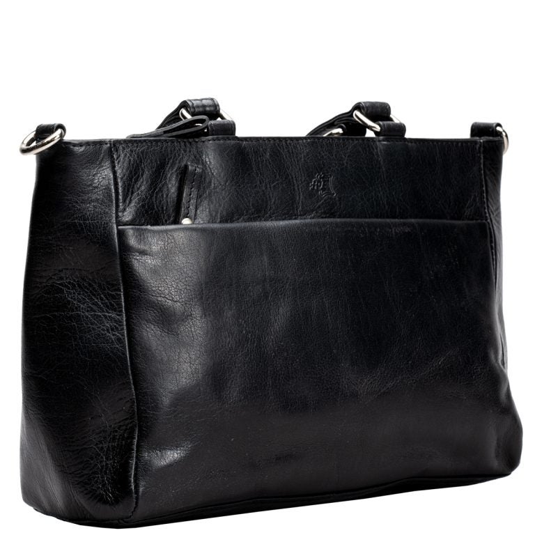 Sisällä laukussa yksi iso ja kaksi pienempää avotaskua sekä vetoketjutasku helpottamassa organisointia. Laukun edessä sekä takana vetoketjutaskut.