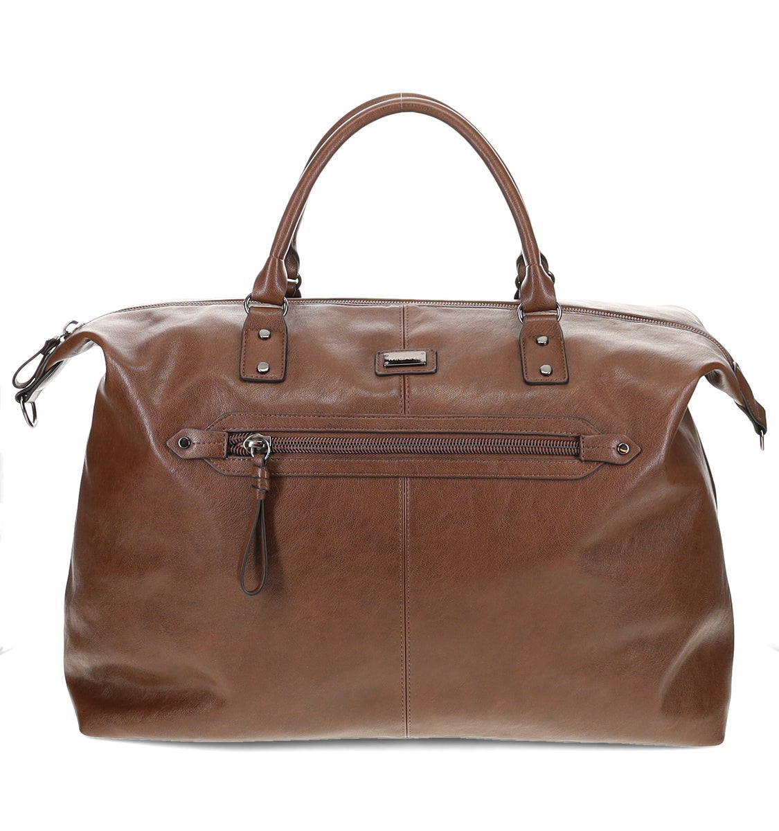 Kevyt näin isoksi laukuksi! Helposti liikkuvat vetoketjut ja tyylikäs pehmeä keinonahka.