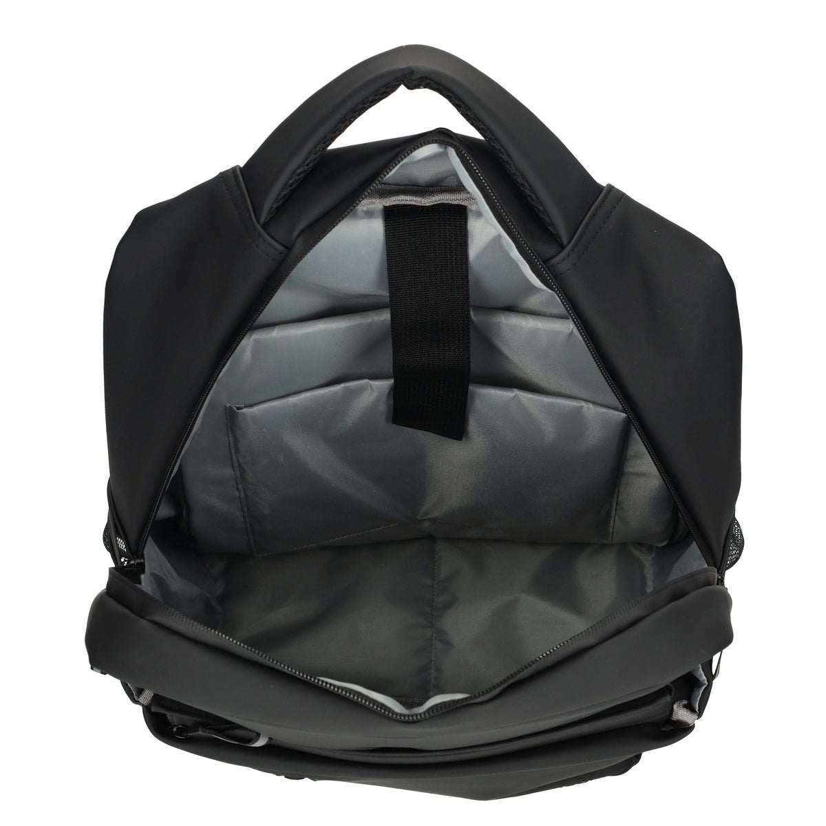 Tilava päätila aukeaa reilusti helpottaen pakkaamista/tavaroiden pois ottamista. Sisätilassa selkää vasten pehmustetut paikat 15.6"-tietokoneelle sekä 10.2"-tabletille. Kansipuolella sisällä kaksi tilavaa avotaskua sekä vetoketjutasku. Edessä tilava vetoketjutasku sekä pienempi tasku esim. avaimille. Molemmilla sivuilla pullotaskut. Takana turvatasku, loistava esim. lompakolle.