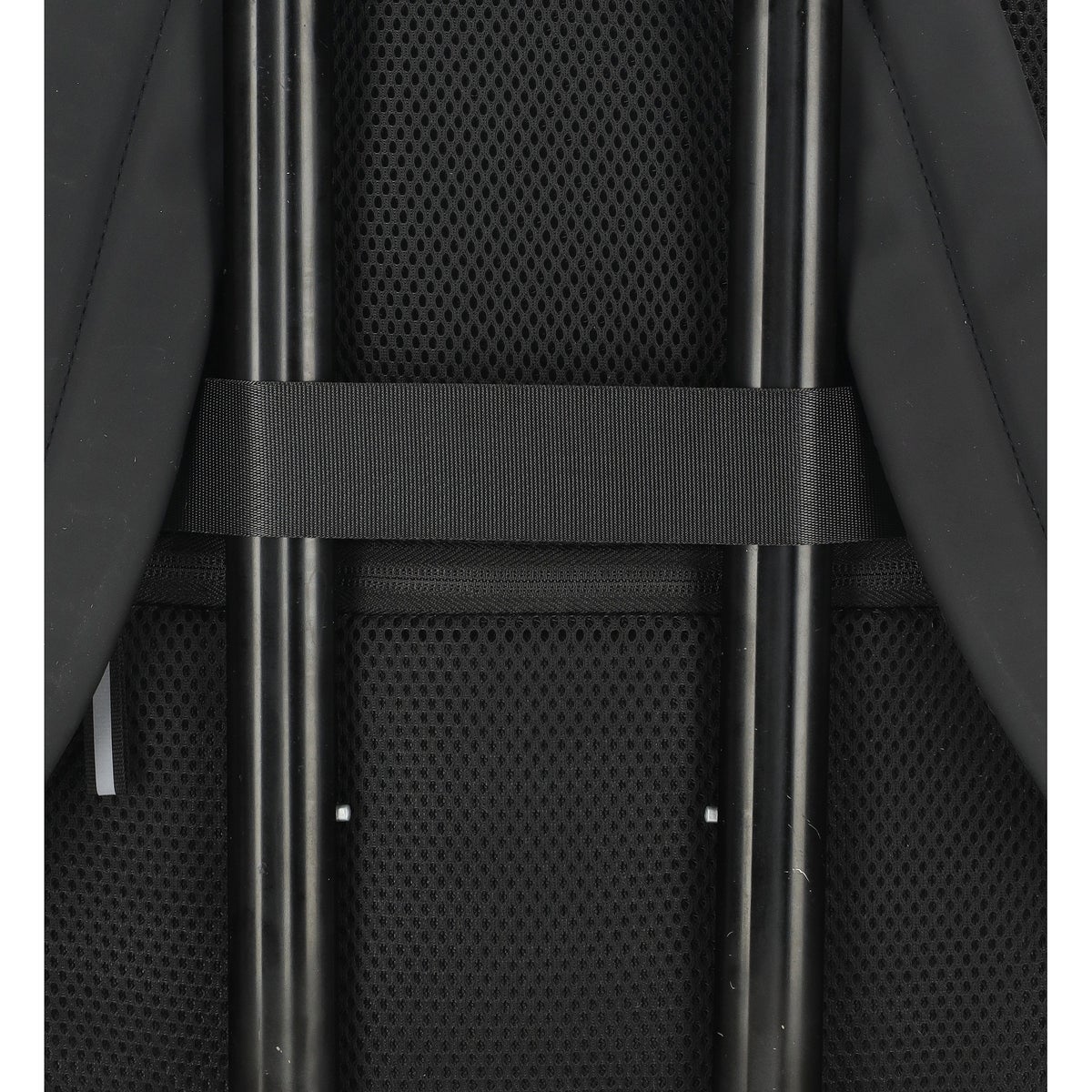 Takana aisapaikka jonka avulla repun saa kätevästi matkustamaan matkalaukun päällä. Vetimissä ja edessä olevassa vetoketjussa heijastimet.