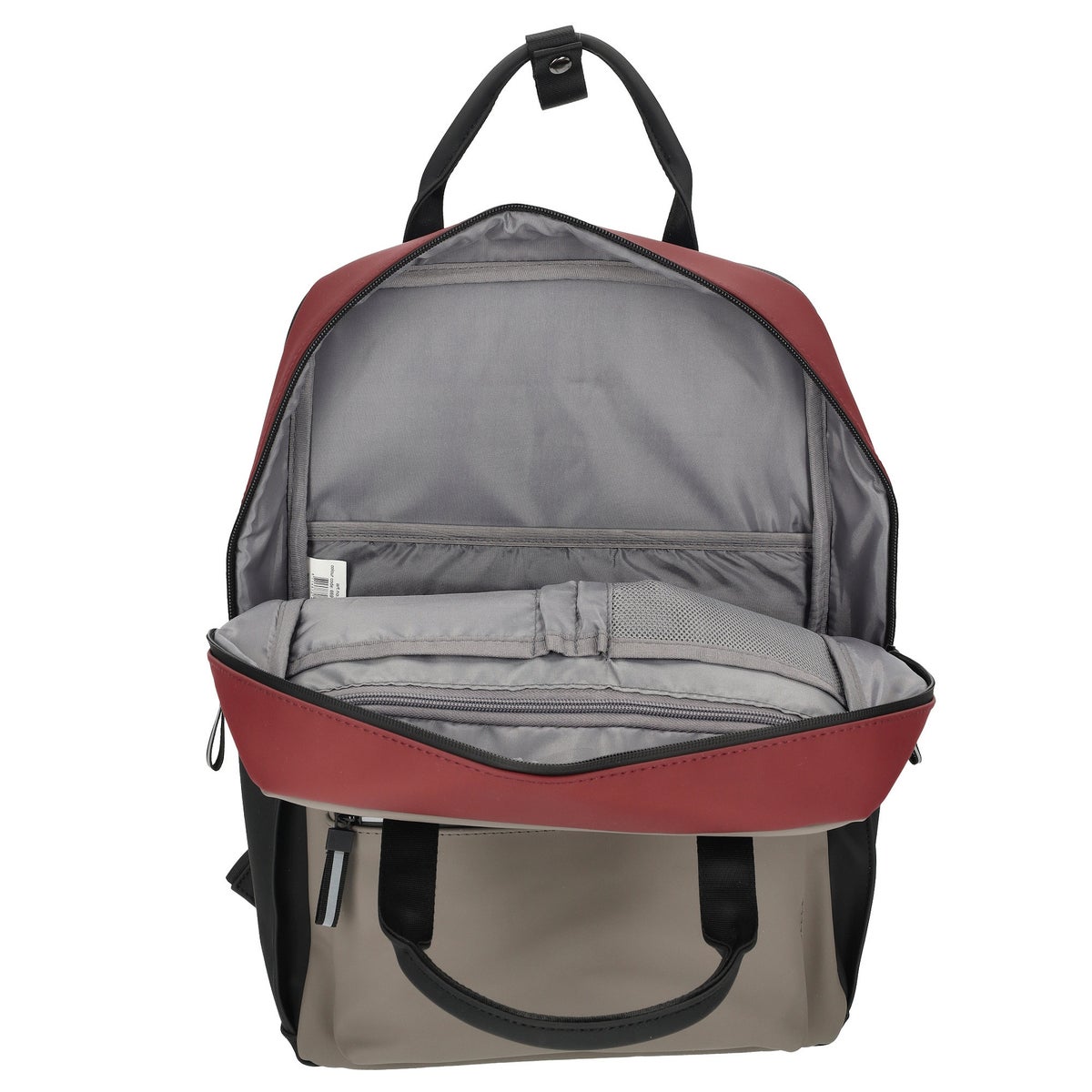 Päätilassa selkäpuolella on iso avotasku. Kansipuolella on kaksi pientä avotaskua, kaksi kynäpaikkaa sekä vetoketjutasku. Selkää vasten on oma topattu osasto 15,6"-tietokoneelle. Edessä vetoketjutasku pikkutavaroille. Takana turvatasku, loistava mm. lompakolle. Molemmilla sivuilla pienet pullotaskut.